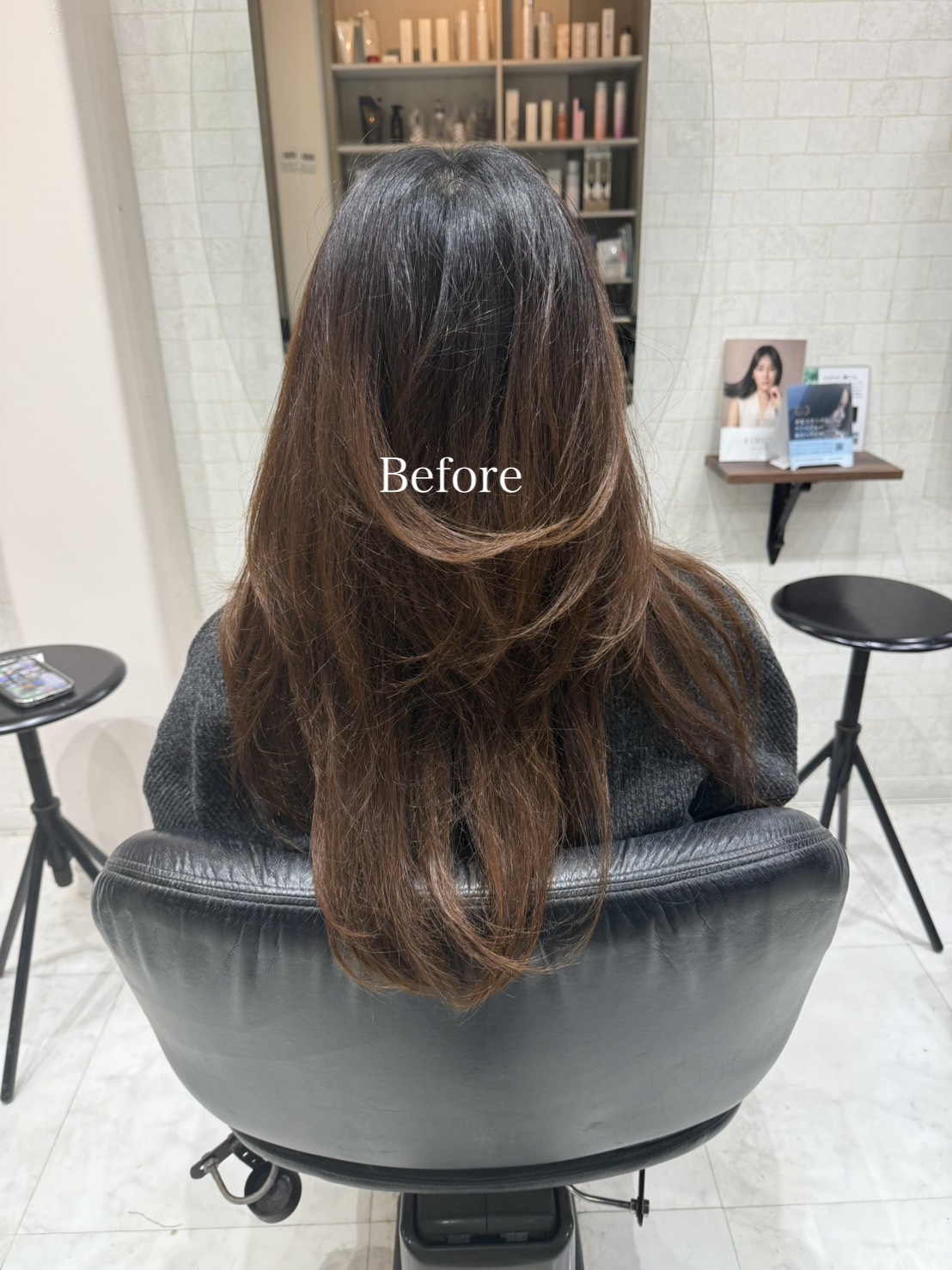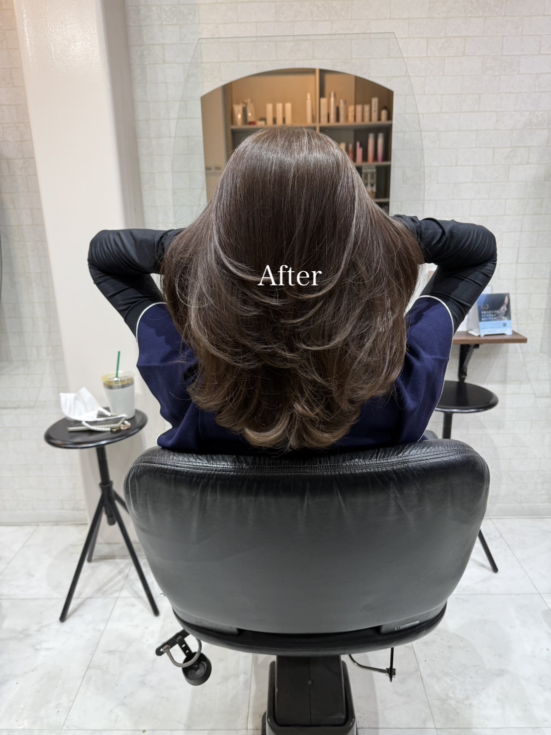 カラー施術の過程で失われやすい水分や栄養をメテオのトリートメント剤で補い、ダメージの原因にアプローチすることで、従来のカラーとは違う「手触り」と「ツヤ感」を実現します。