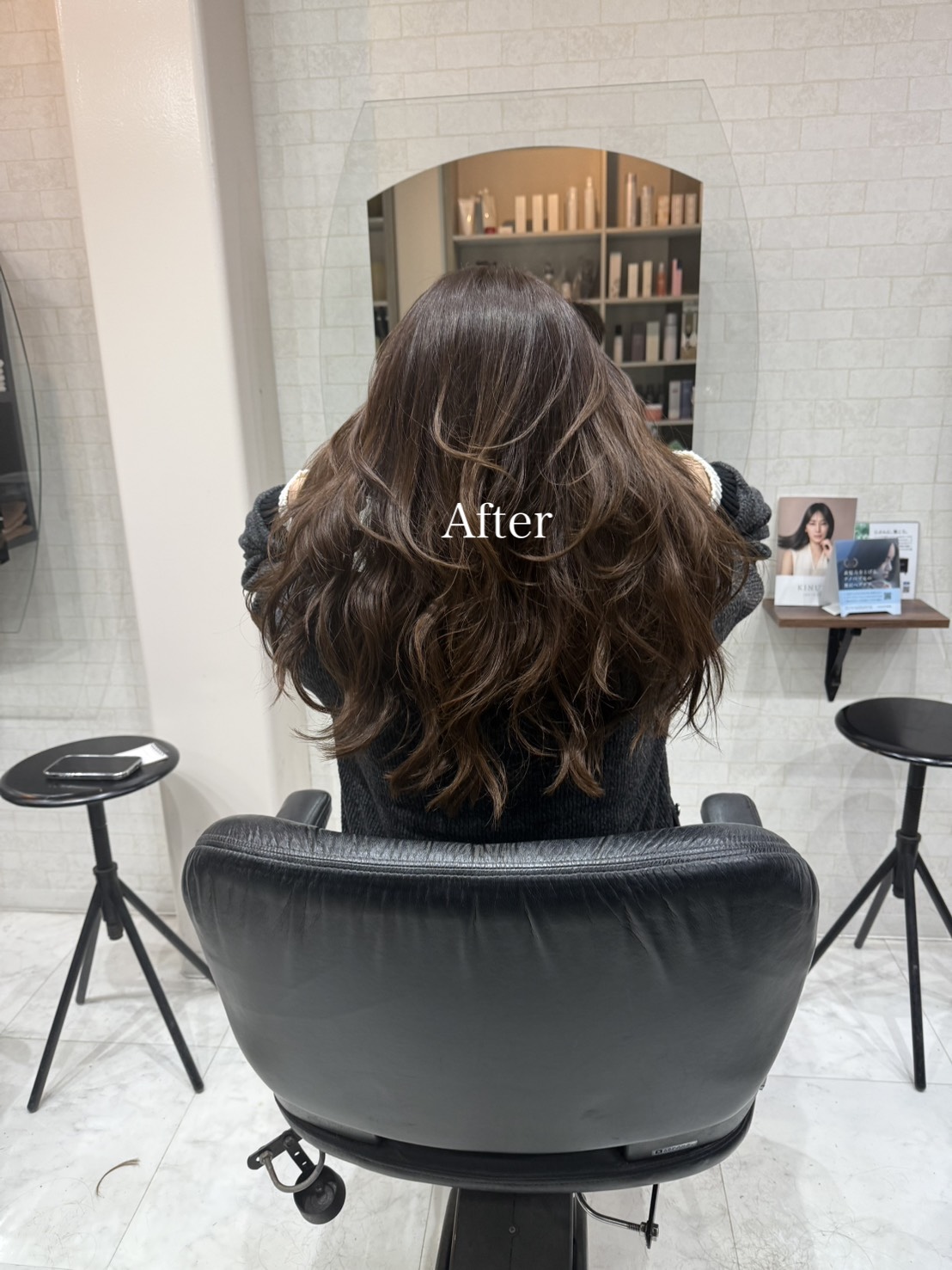ただ染めるだけではなく、パサつき・ごわつき・広がりを抑える質感づくりまで考えた施術。